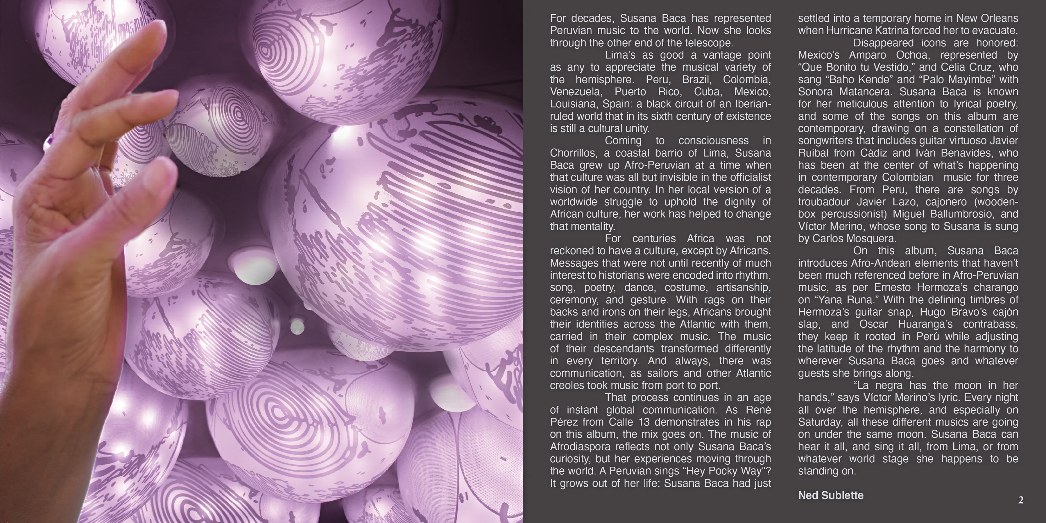 For decades, Grammy Award winner Susana Baca has represented Peruvian music to the world. Here, Susana gives voice to her life-long immersion in the music of the African Diaspora. Presenting songs of African descendants in Cuba, Argentina, New Orleans, and across the world, as well as the rhythms of forro, cumbia, tango, Afrodiaspora is a travelog that spans centuries and continents through the voice of one of the world’s most celebrated singers.