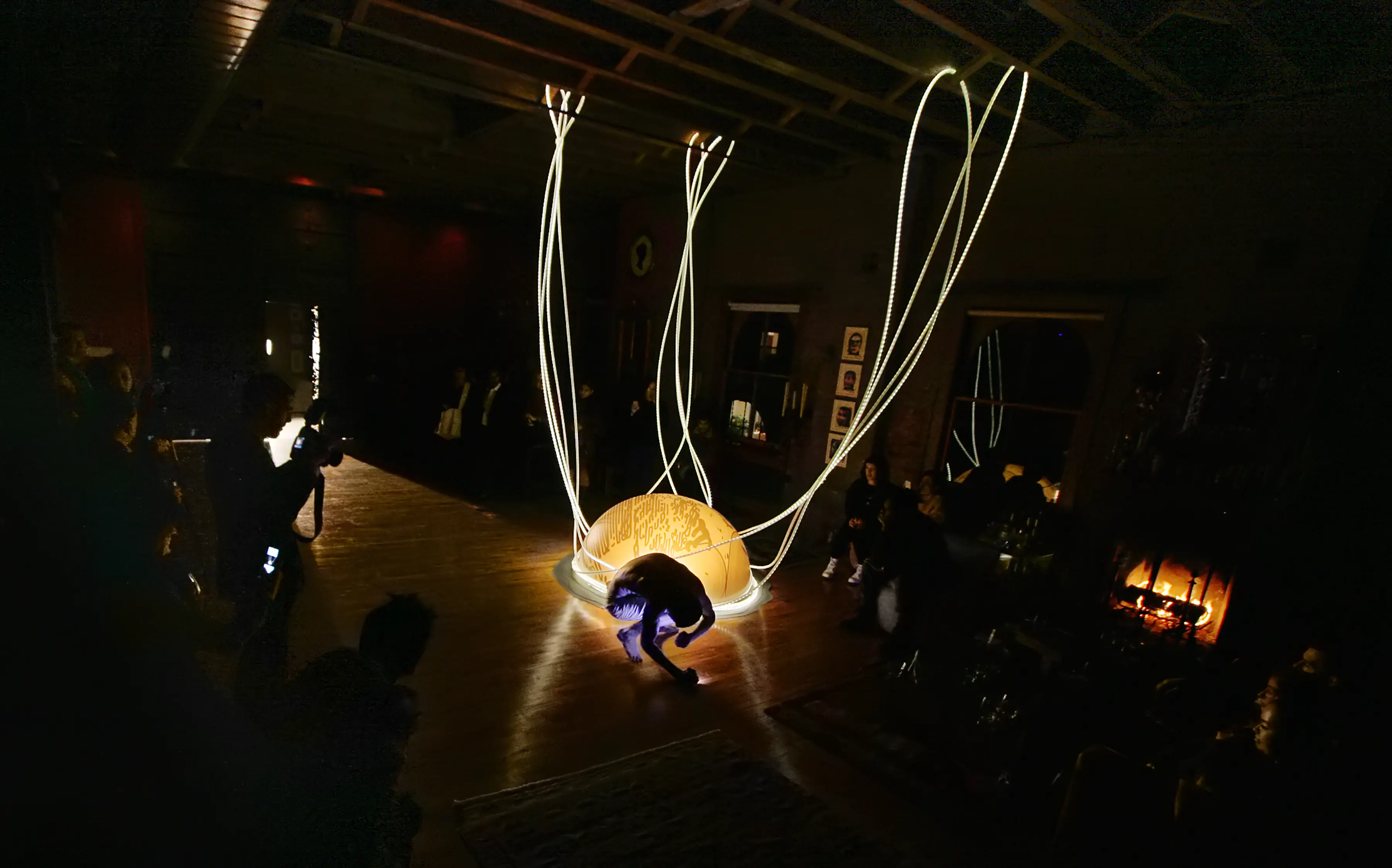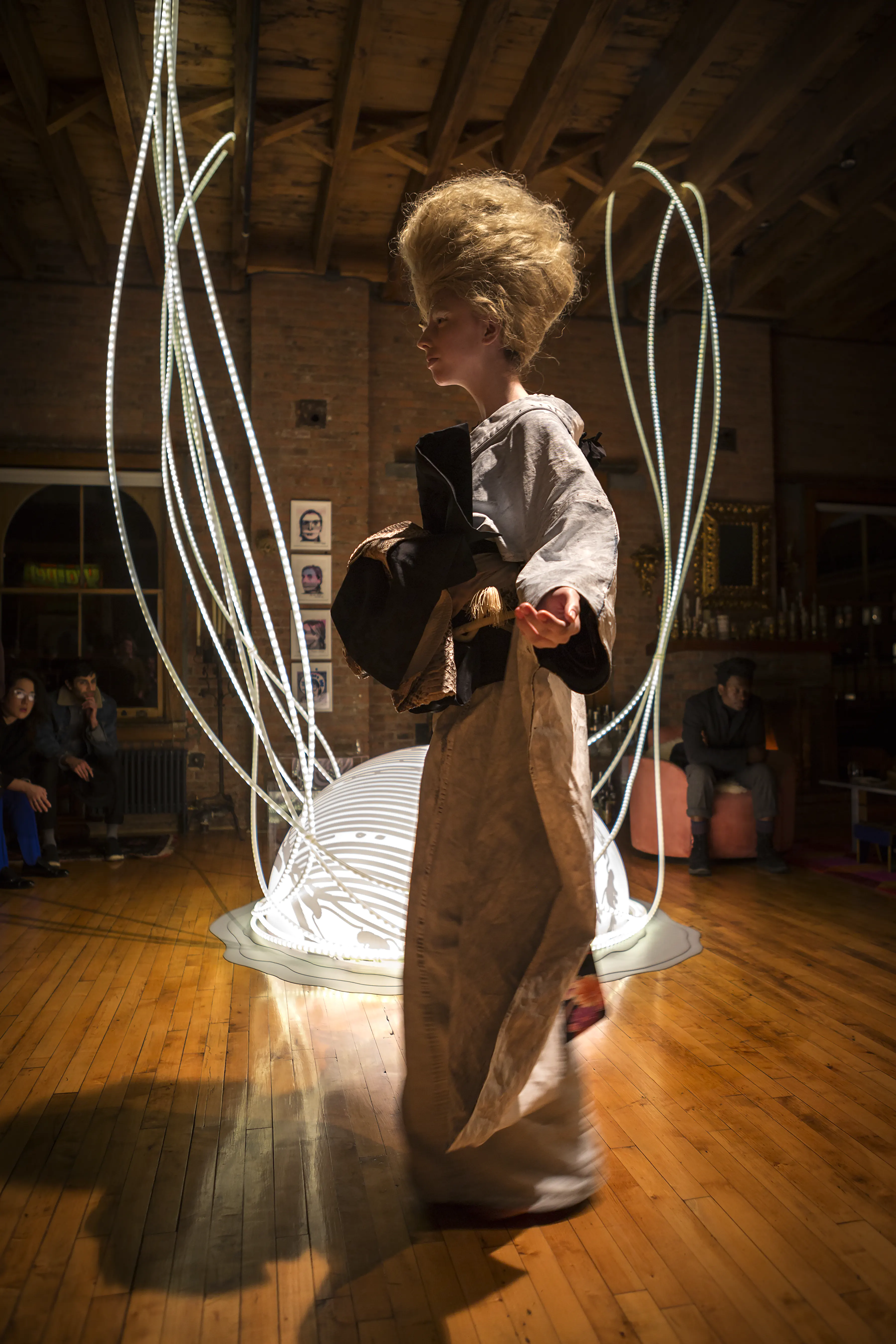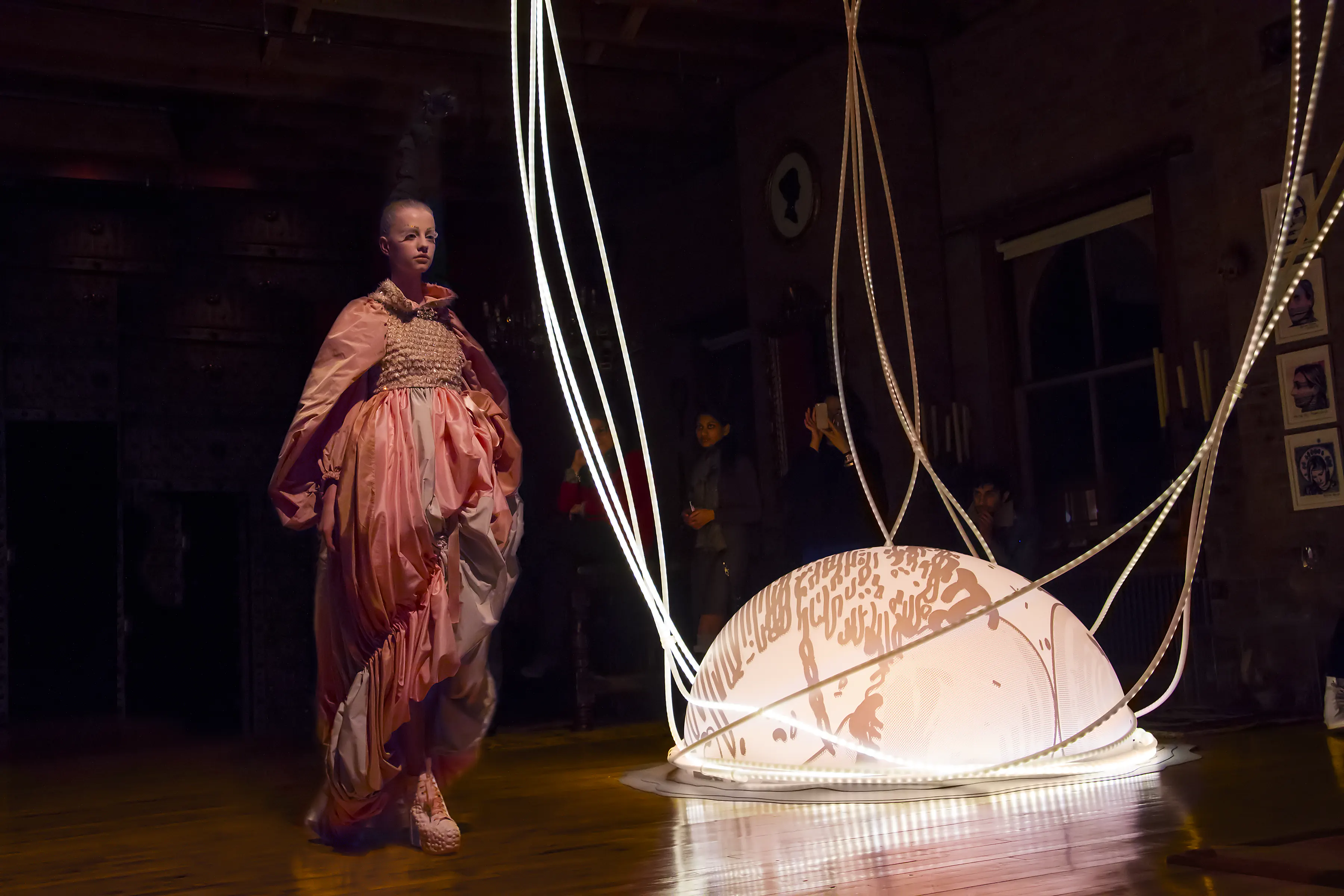 AKIKO ELIZABETH MAIE, the fashion designer from Nepenthes AMERICA INC., in collaboration with multidisciplinary artist Grimanesa Amoros, is proud to present ONKOCHISHIN: a light sculpture installation and fashion exhibition event.