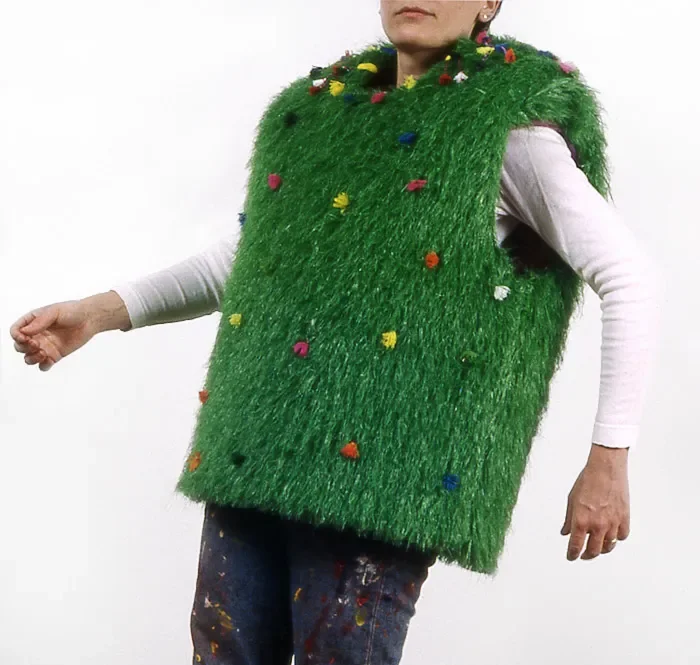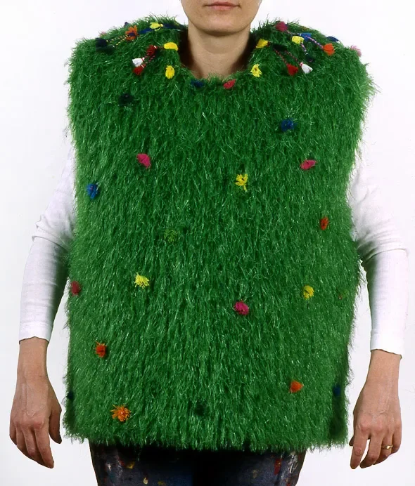 ART TO WEAR: Exhibition at the Spruill Center For The Arts in Atlanta as part of THE BODY ECLECTIC in 1997, organized by director Joan Burge Wallick. Artists have created vests to be sold under the unwieldy title “In-VESTments: Artist-Made Vests.” Most can be worn and vary from the sophisticated to the outrageous. “Clothing beyond it’s function often serves as a way of expressing one’s own personality” – Joan Burge Wallick