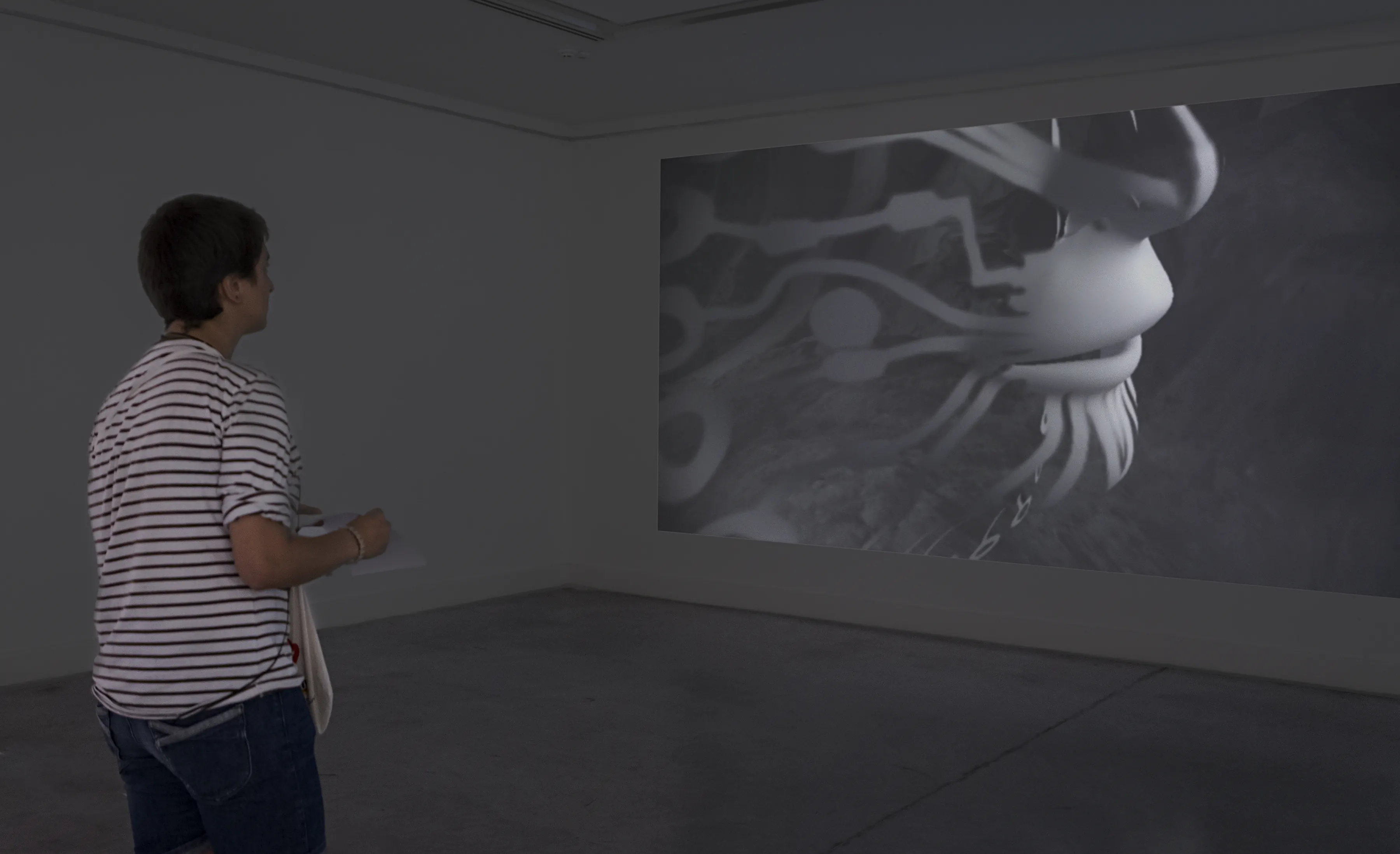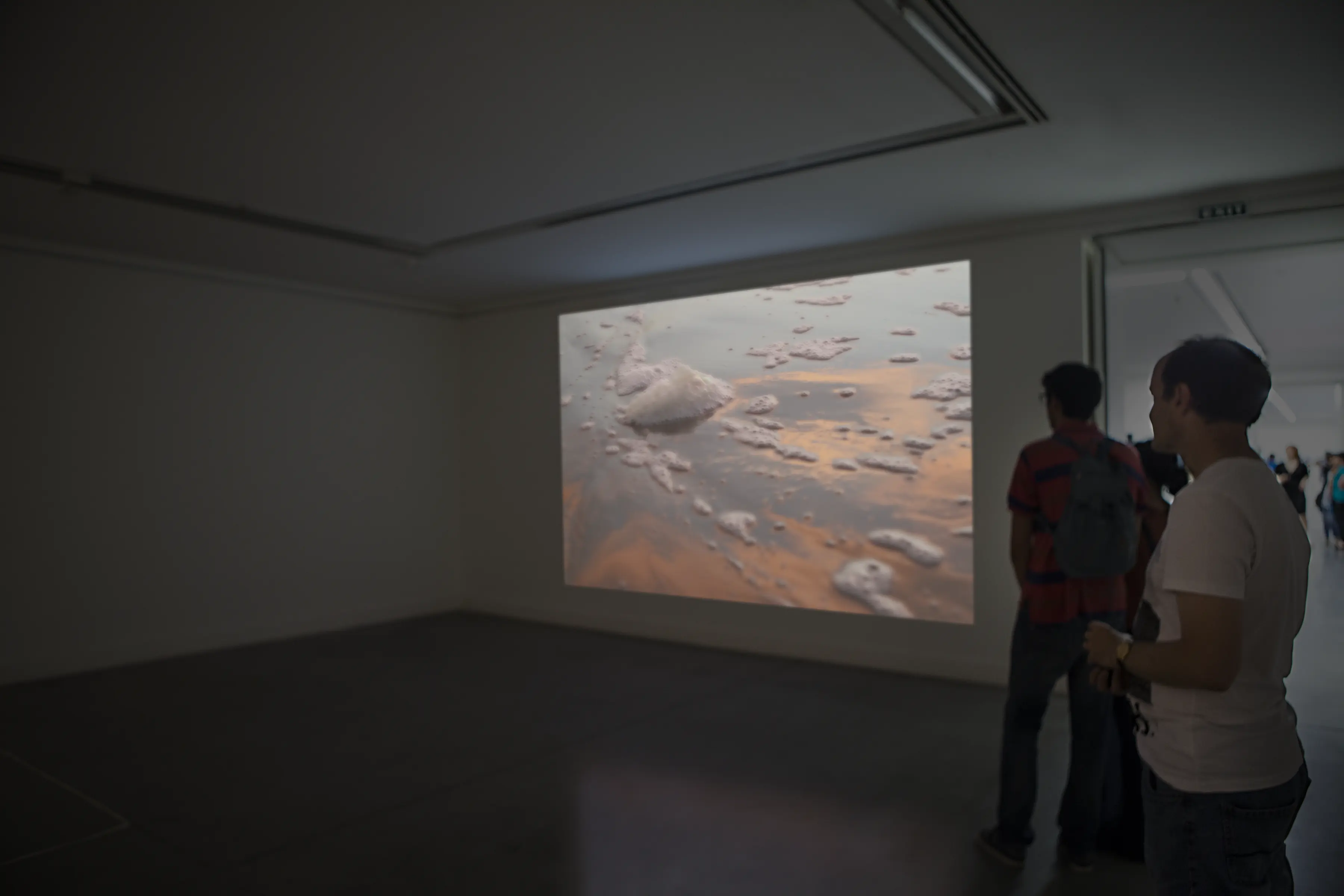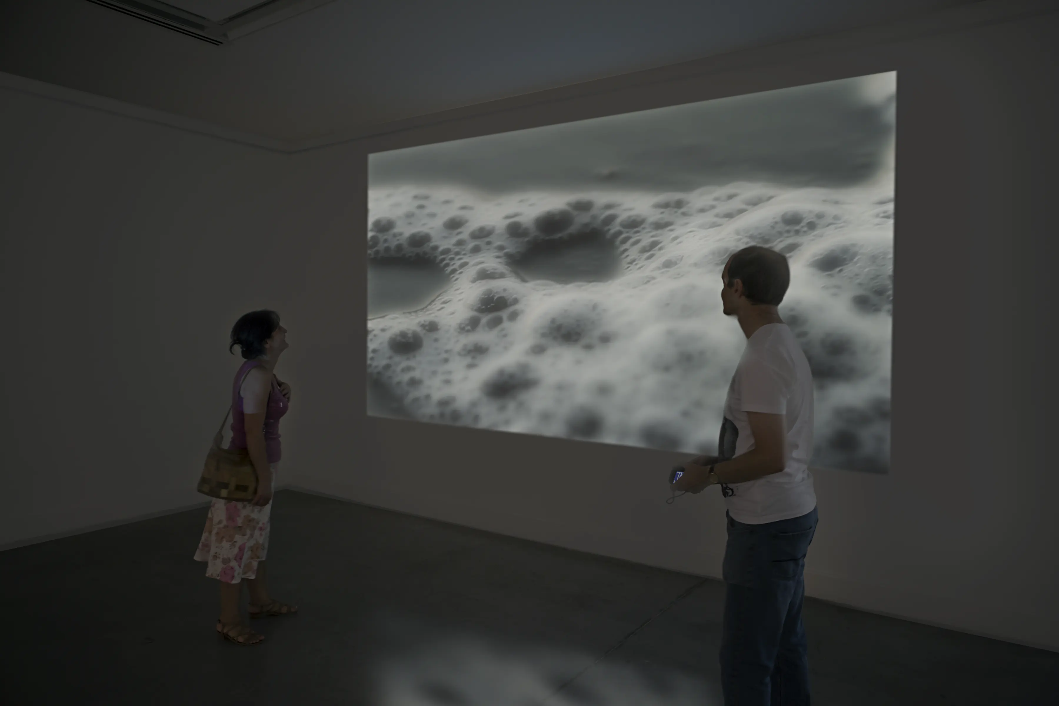 PUNCTUM CONTRA PUNCTUM II was inspired by reshapes of a natural environment which mixes images of ancient Incan monuments, animations of my own face transformed with the lines of the torora reeds, circuit boards all of this imagery derived from Incan sun masks, and shots of sea foam washed up on the Peruvian coastline. I have recently shot the coastline for seven consecutive days at the same time, just when the sun sets and the moon rises.