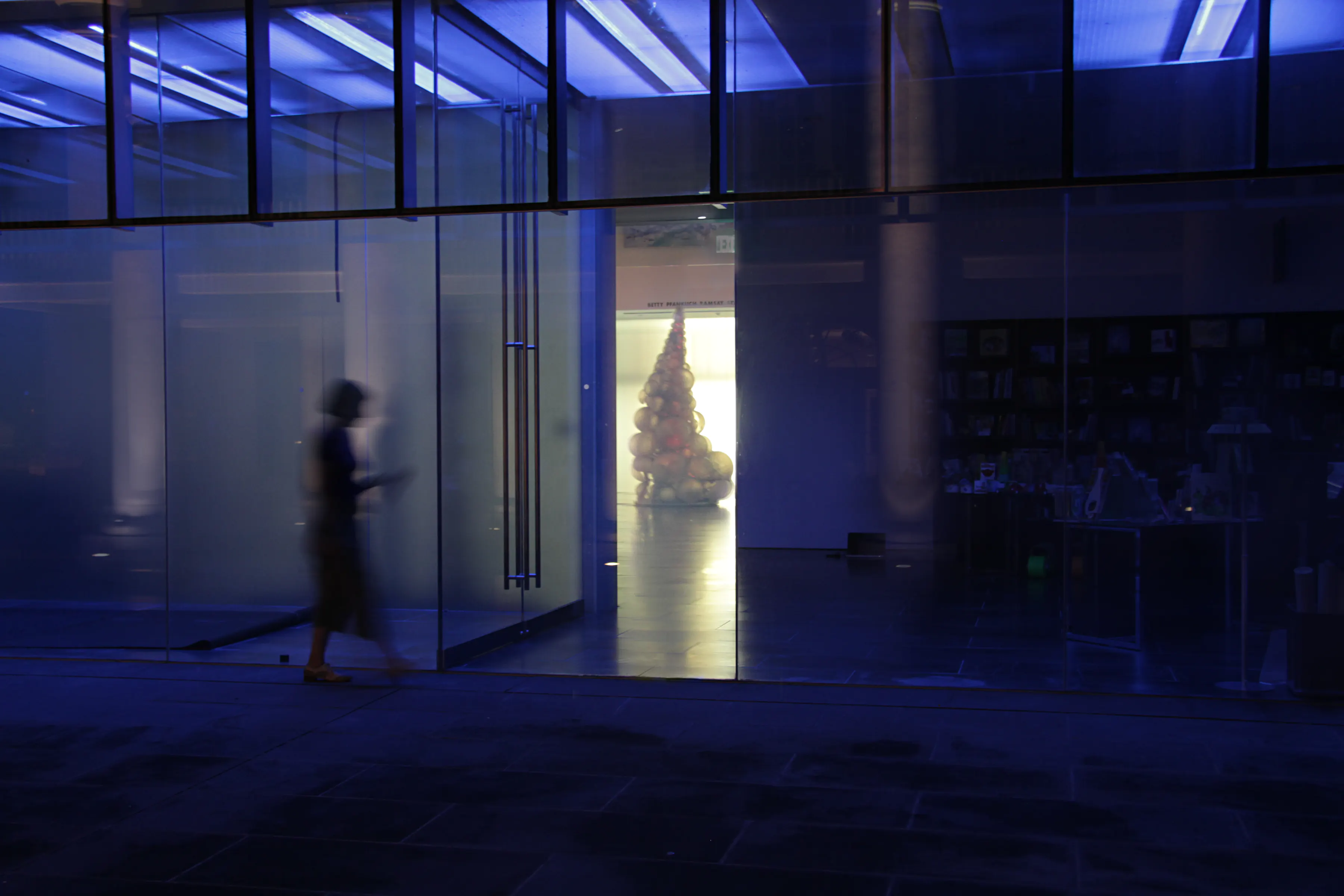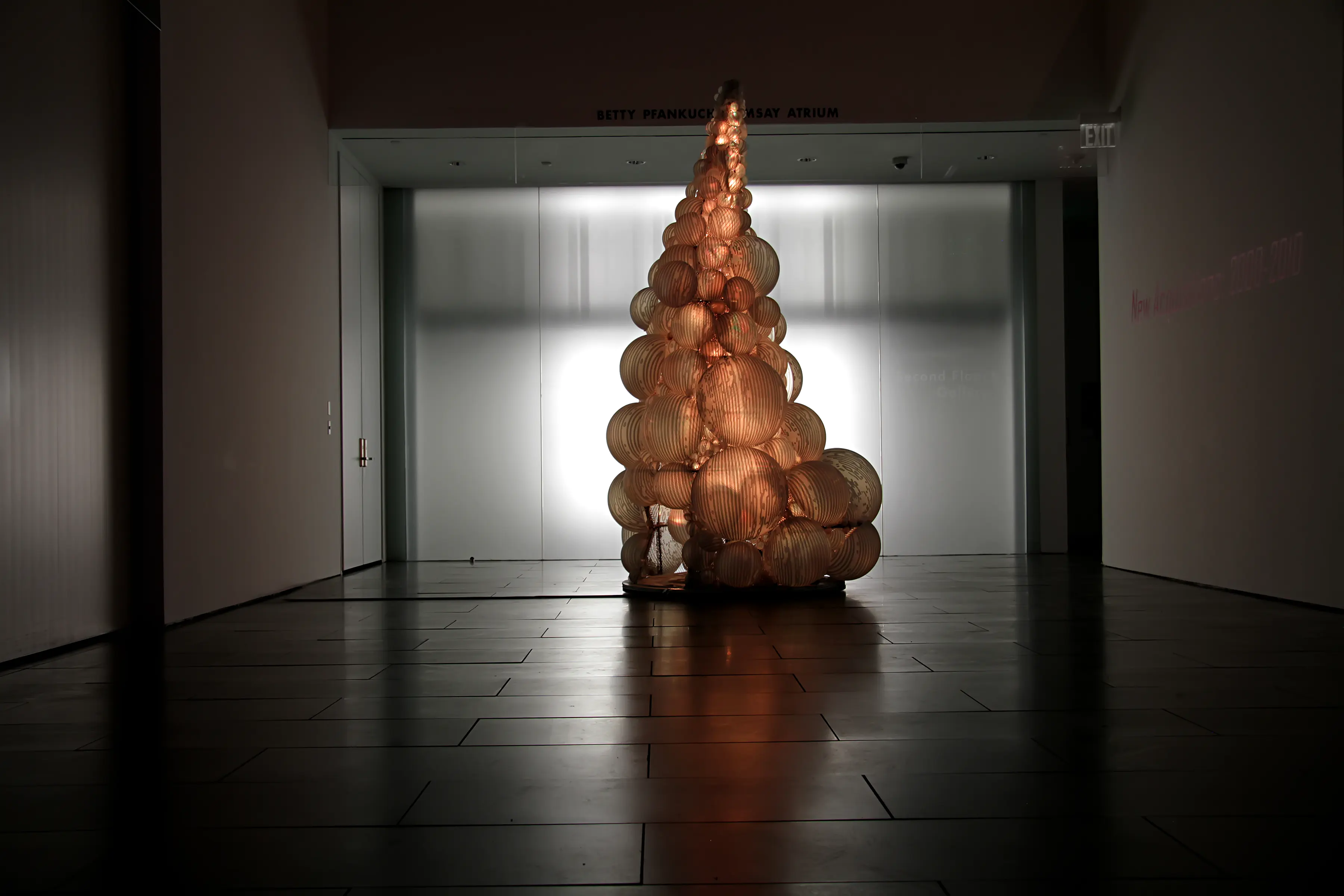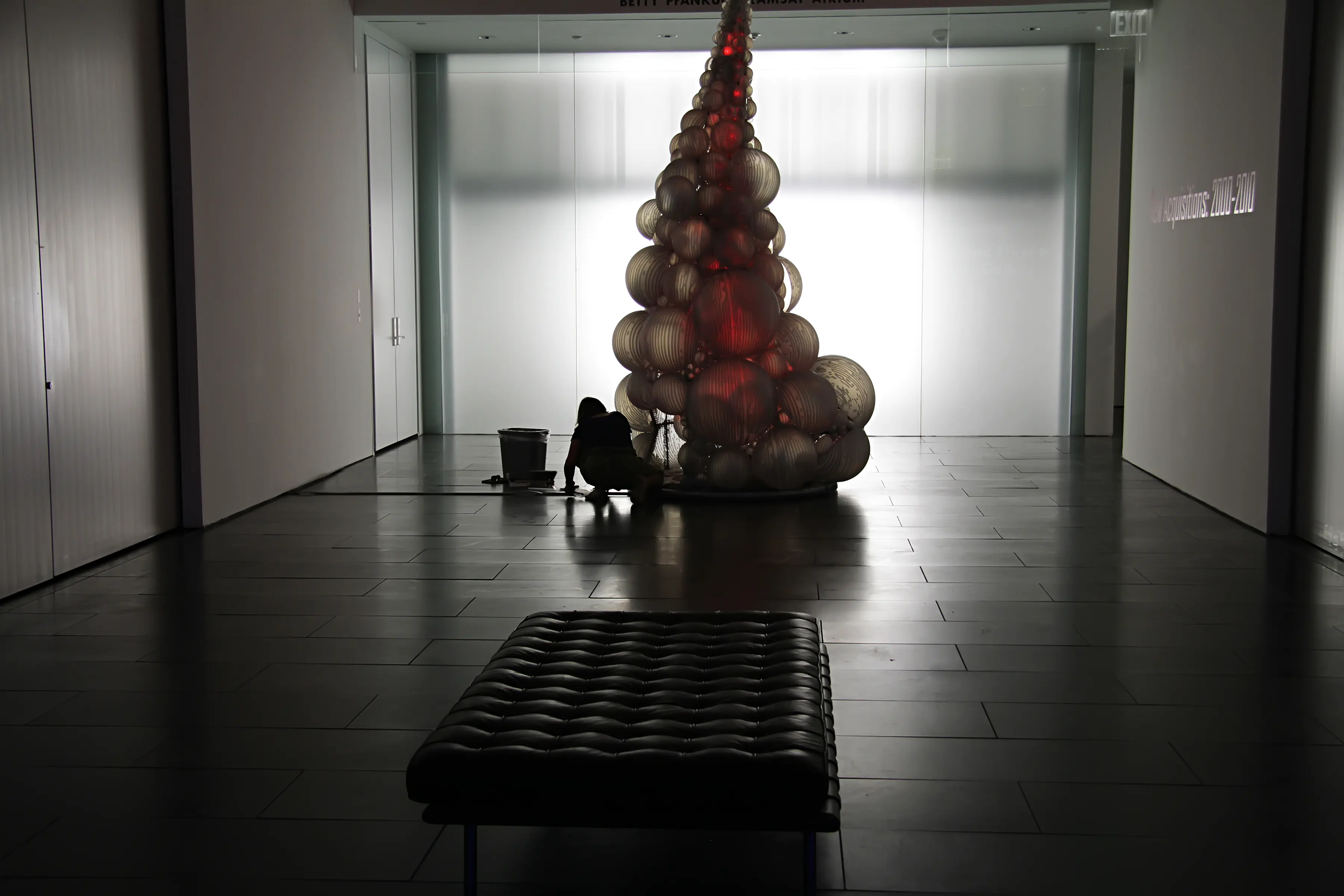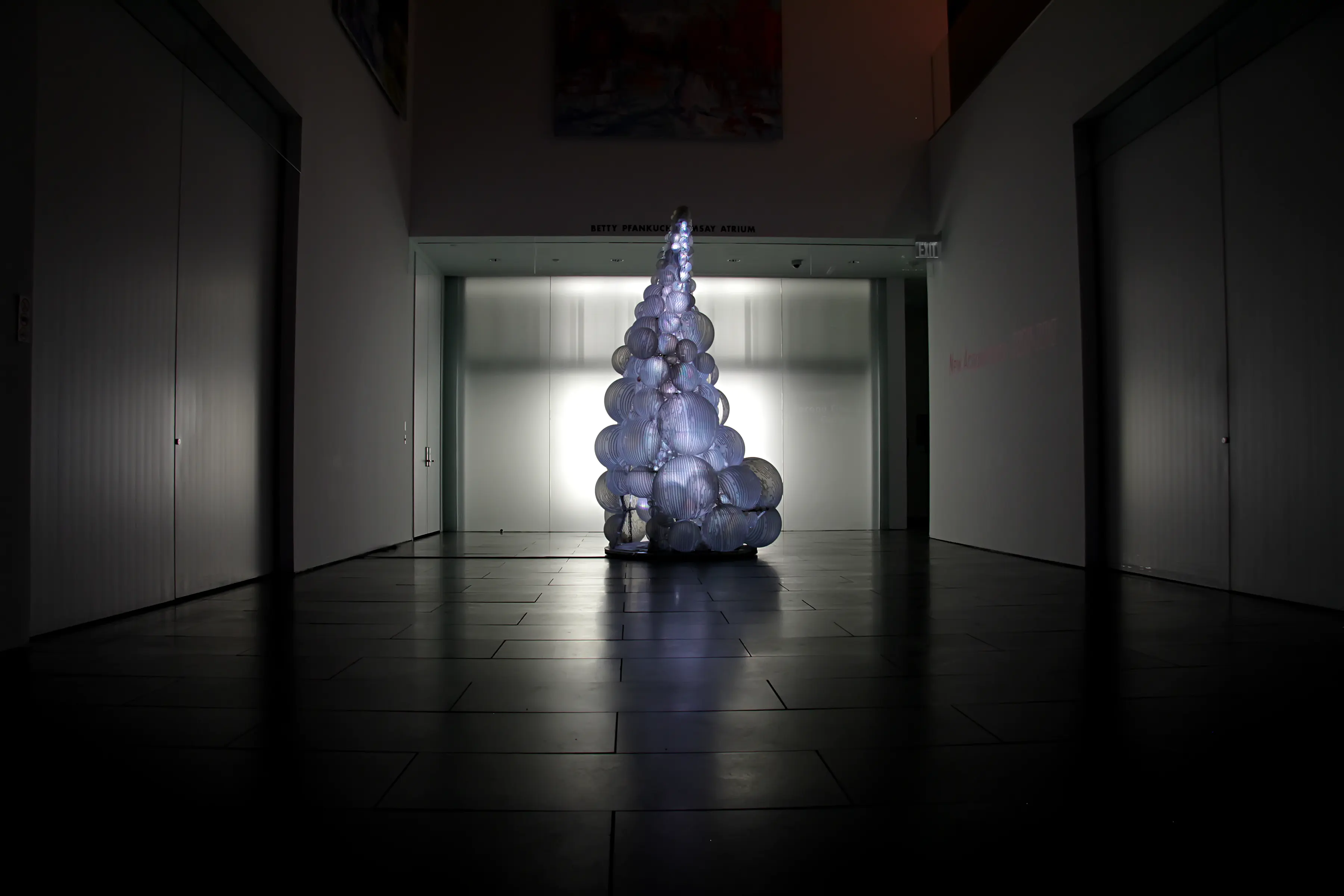 Media: Stainless steel, diffusion material and reflective material, LEDs, custom lighting sequence, and electrical hardware