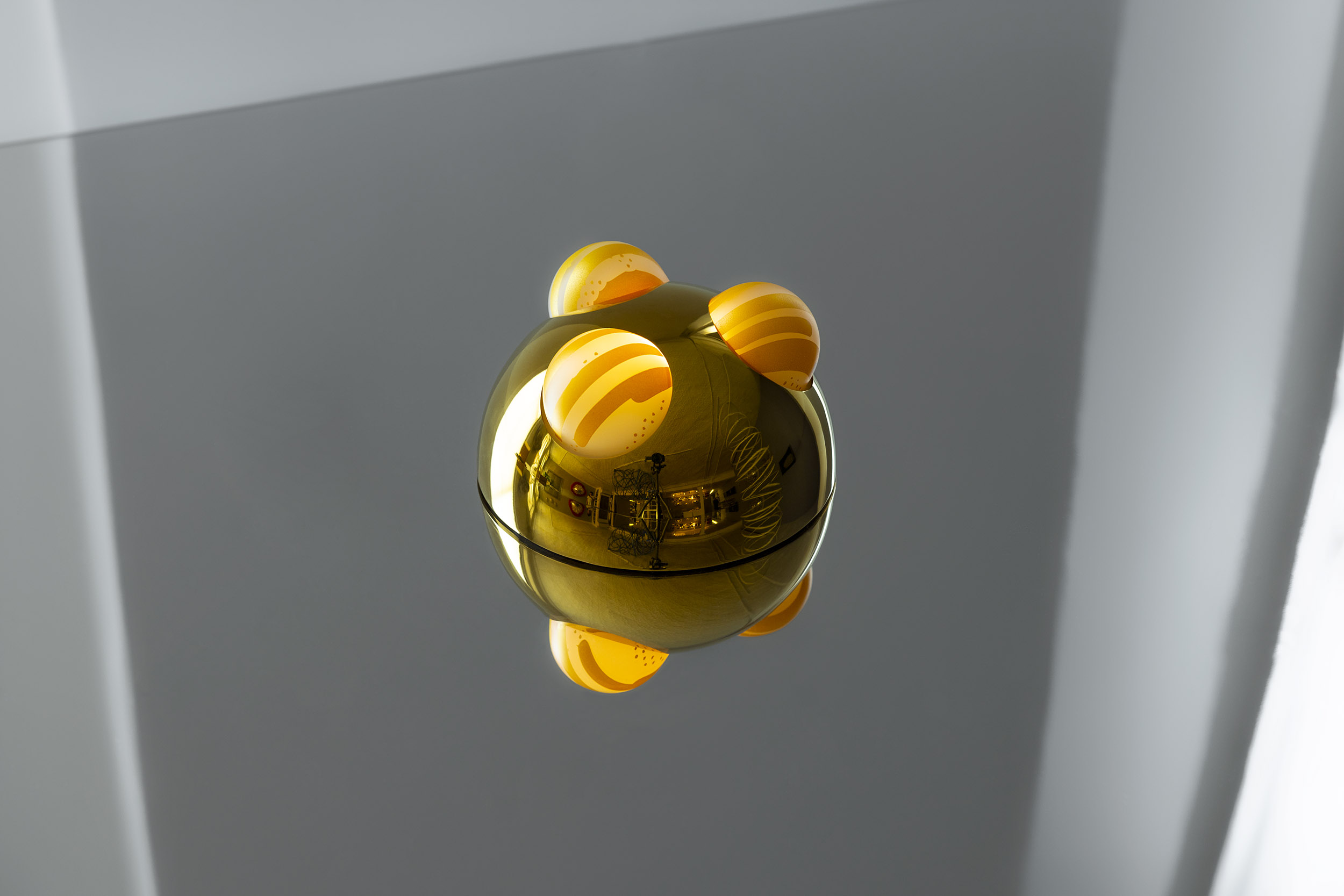 Available in three sizes—6 inches, 9 inches, and 12 inches—these pieces aim to capture various aspects of the foam’s essence. They invite tactile exploration, deepening the viewer’s connection to the artwork. Its reflective surface aims to have the viewer remember and reflect on a time that made them feel curious, like the spume of the ocean did for Amoros. Each piece features a unique custom-made lighting sequence inspired by the artist’s specific memories of the ocean, ranging from crashing waves to the gentle ebb and flow of the foam.