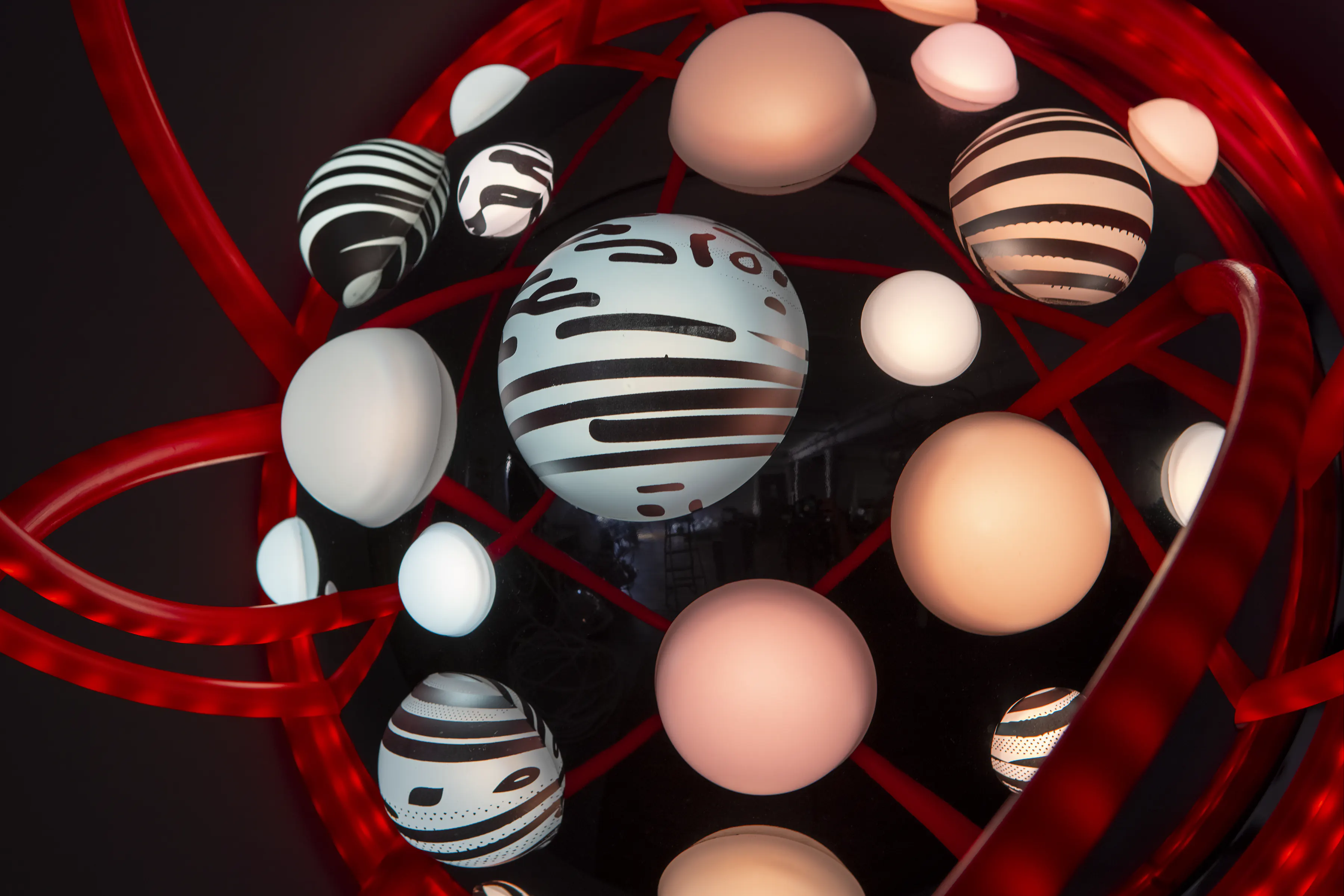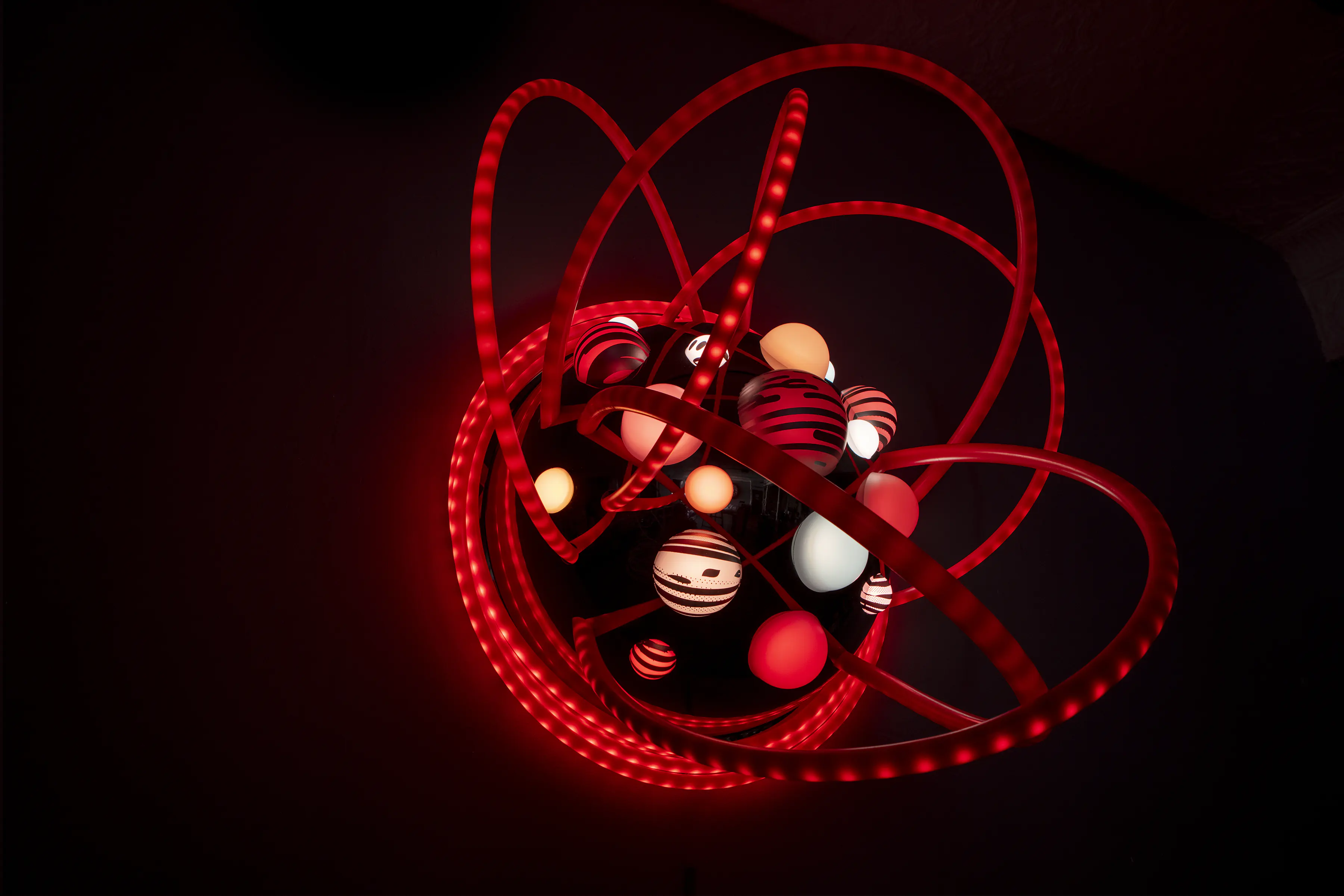 Media: Stainless steel, diffusion and reflective material, LEDs, custom lighting sequence, and electrical hardware