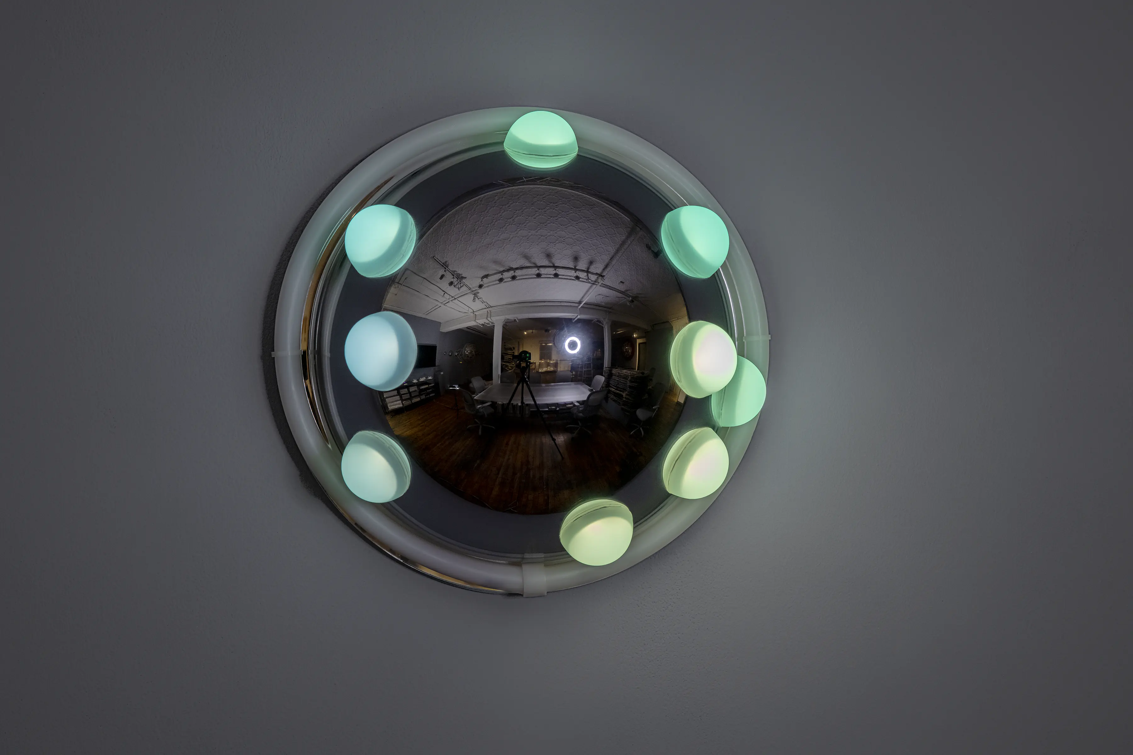 Media: Stainless steel, diffusion and reflective material, LEDs, custom lighting sequence, and electrical hardware