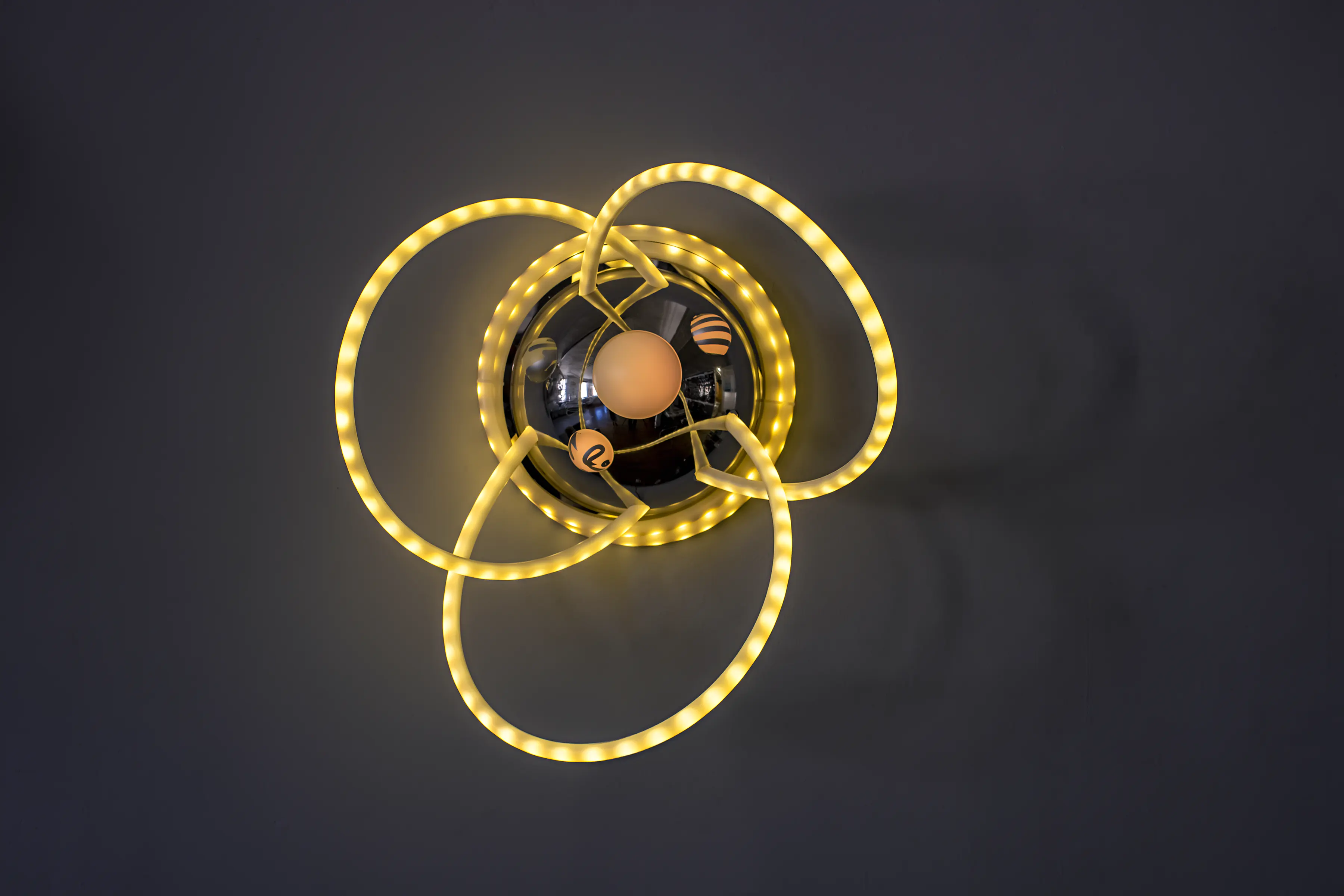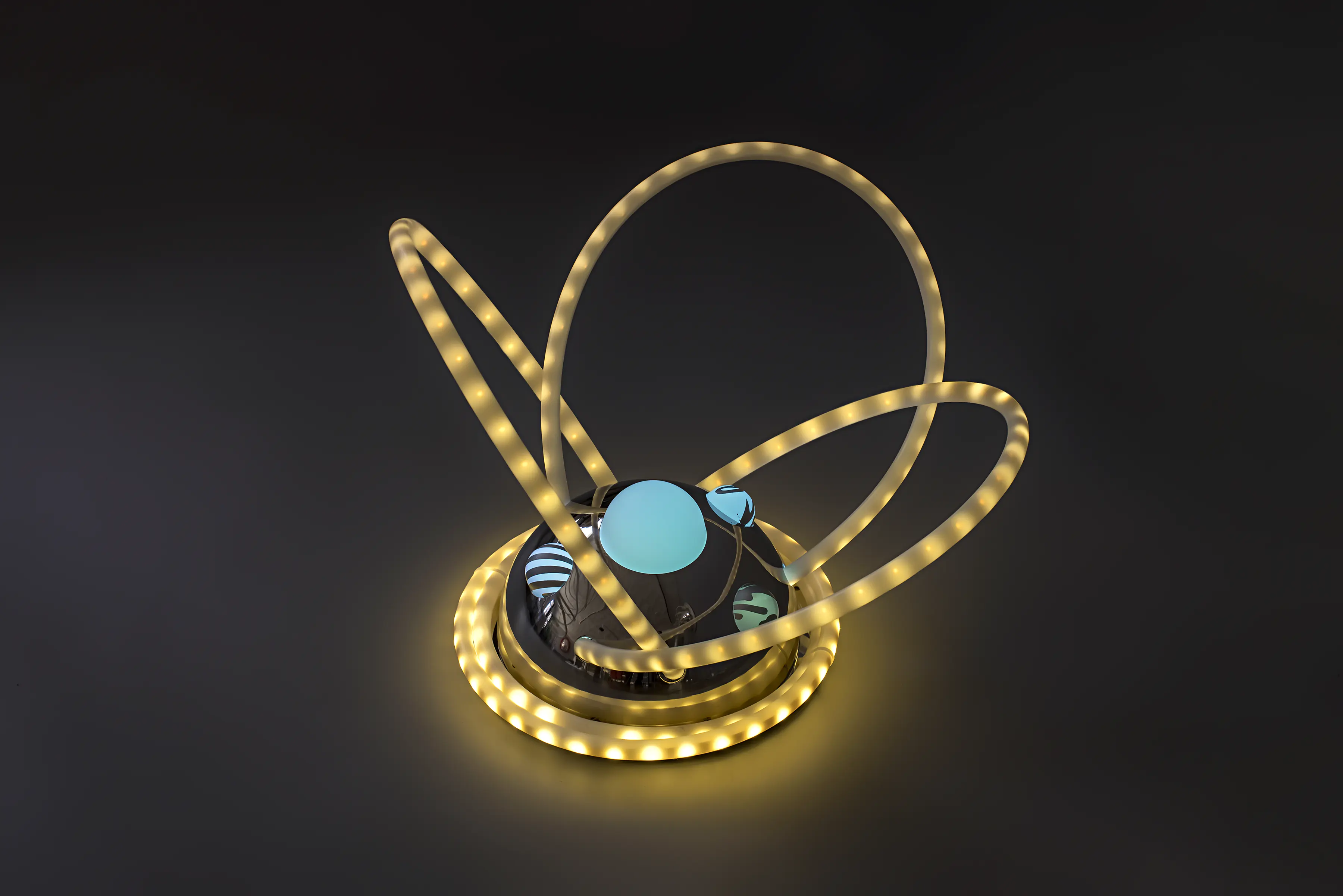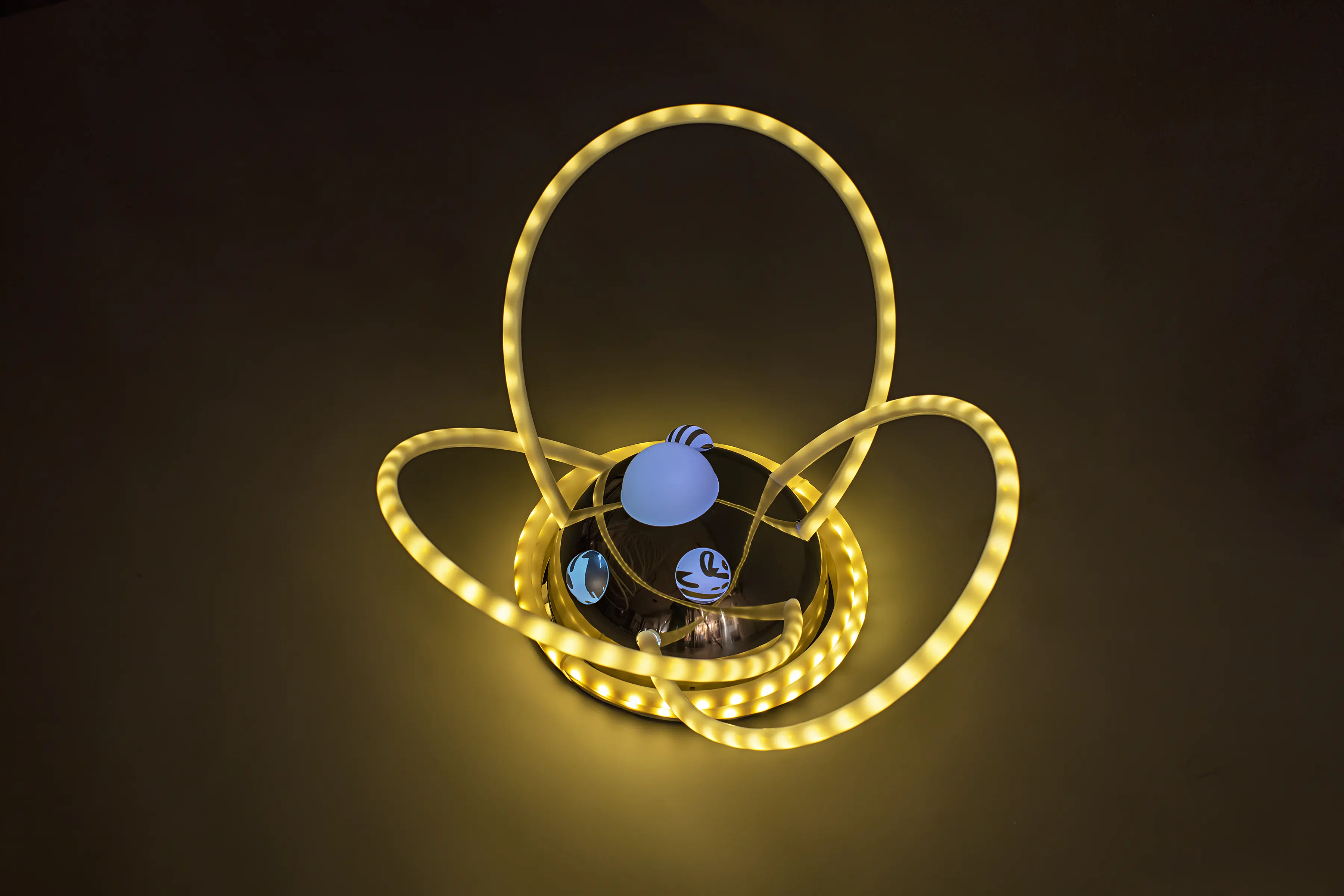 Media: Stainless steel, diffusion material and reflective material, LEDs, custom lighting sequence, and electrical hardware