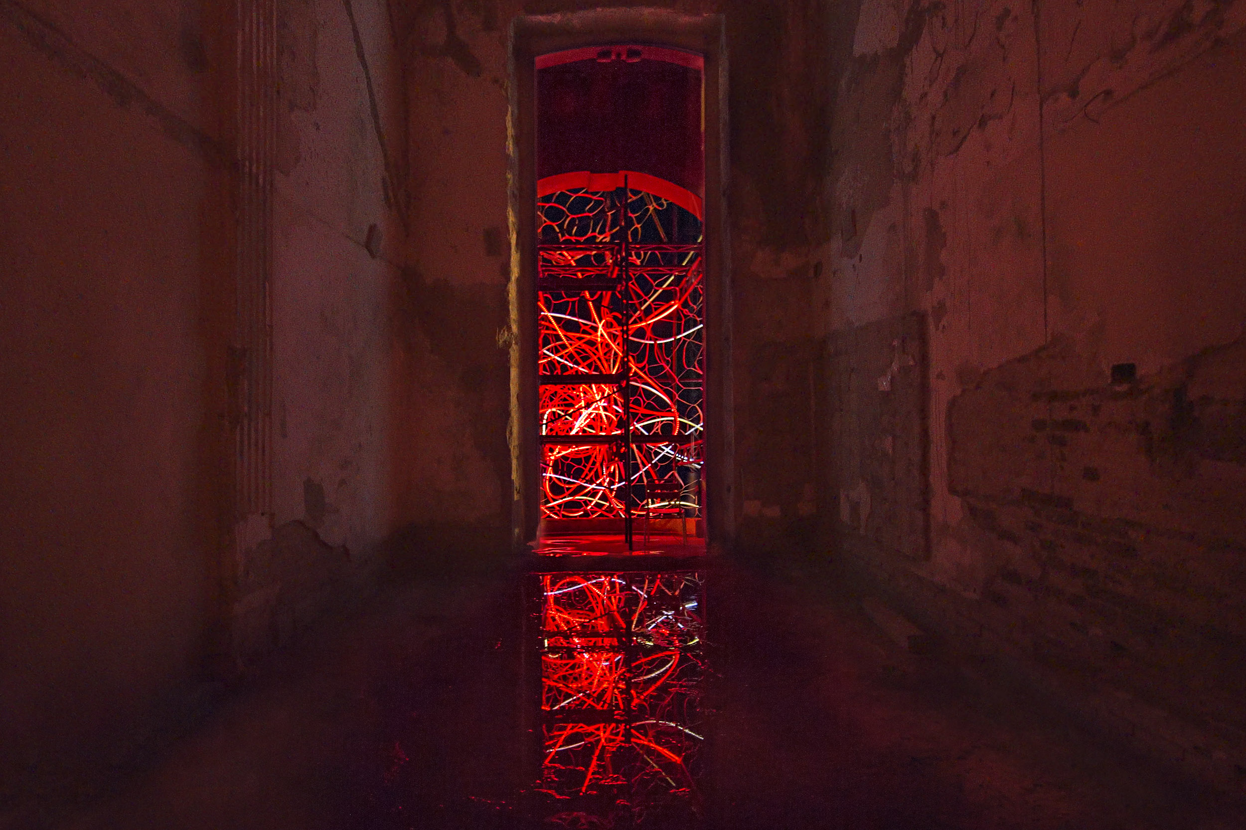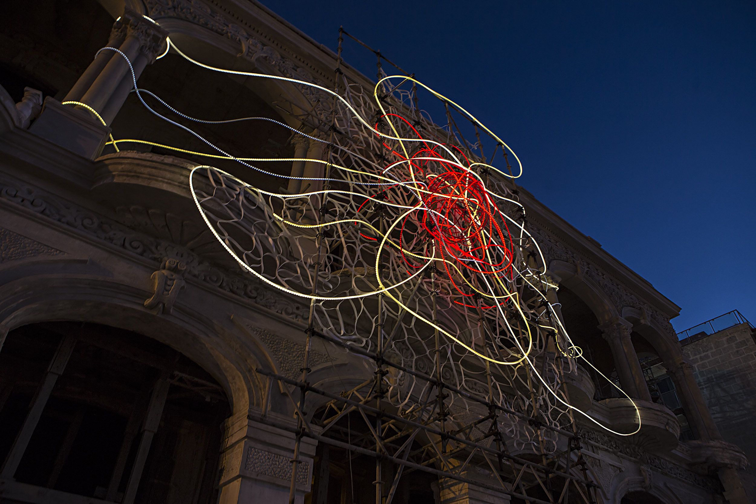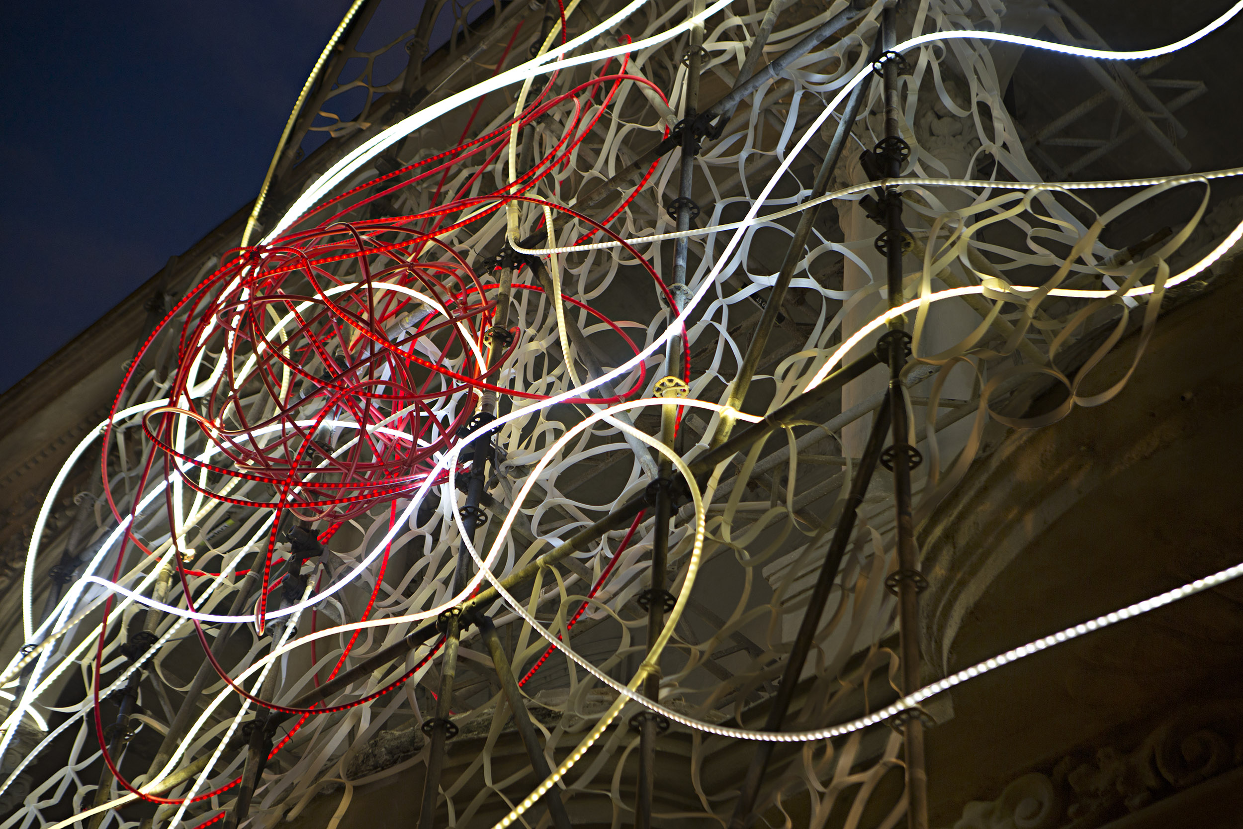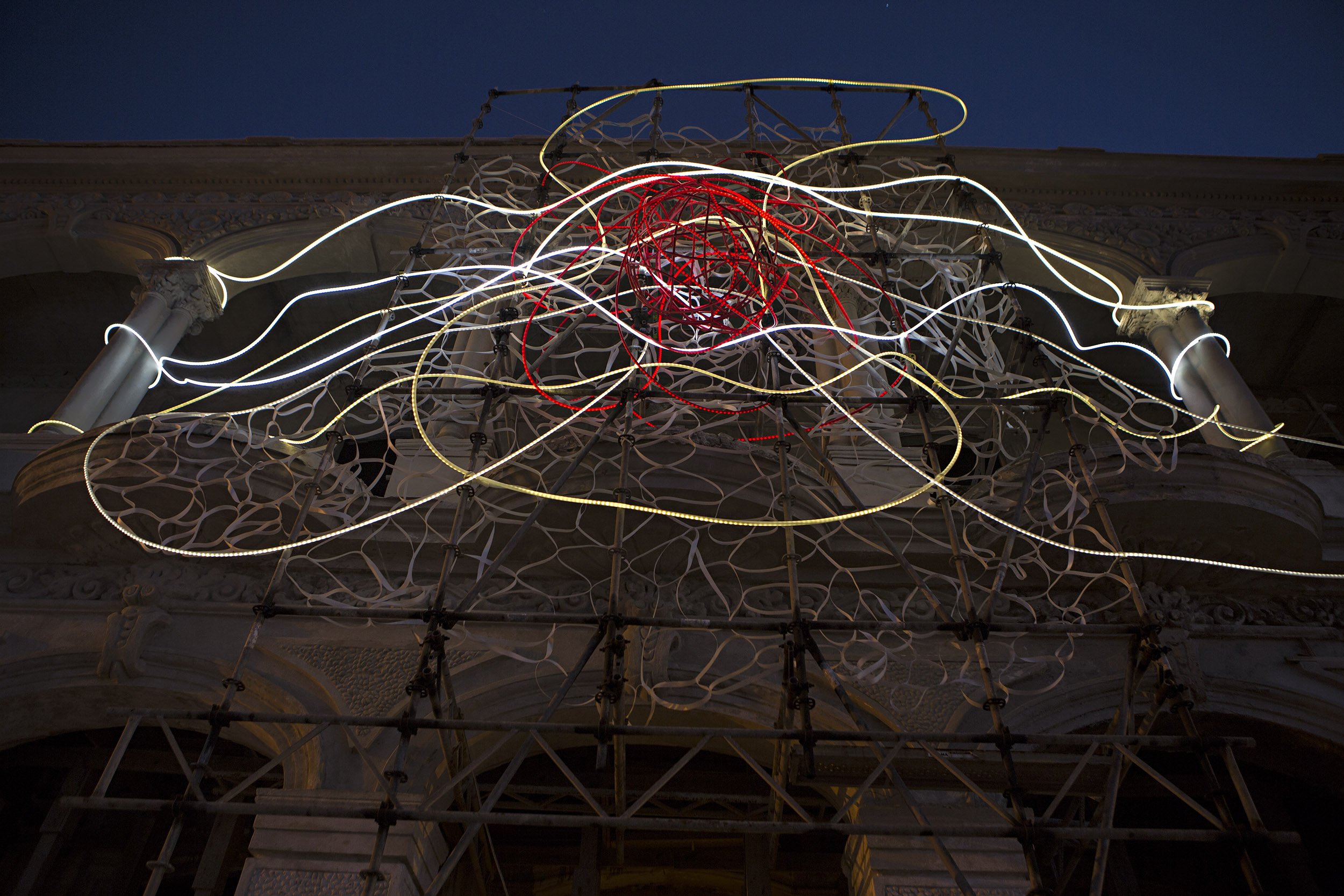 Description: The 13th Havana Biennial, the most significant visual arts event in Cuba, transforms the island’s capital city and creates a “cultural corridor” simultaneously; because of this,  creators and the public interact. Therefore, working with the Detras del Muro organization, Grimanesa Amoros created MARIPOSA DORADA, a monumental light sculpture installation for the 13th Havana Biennial.