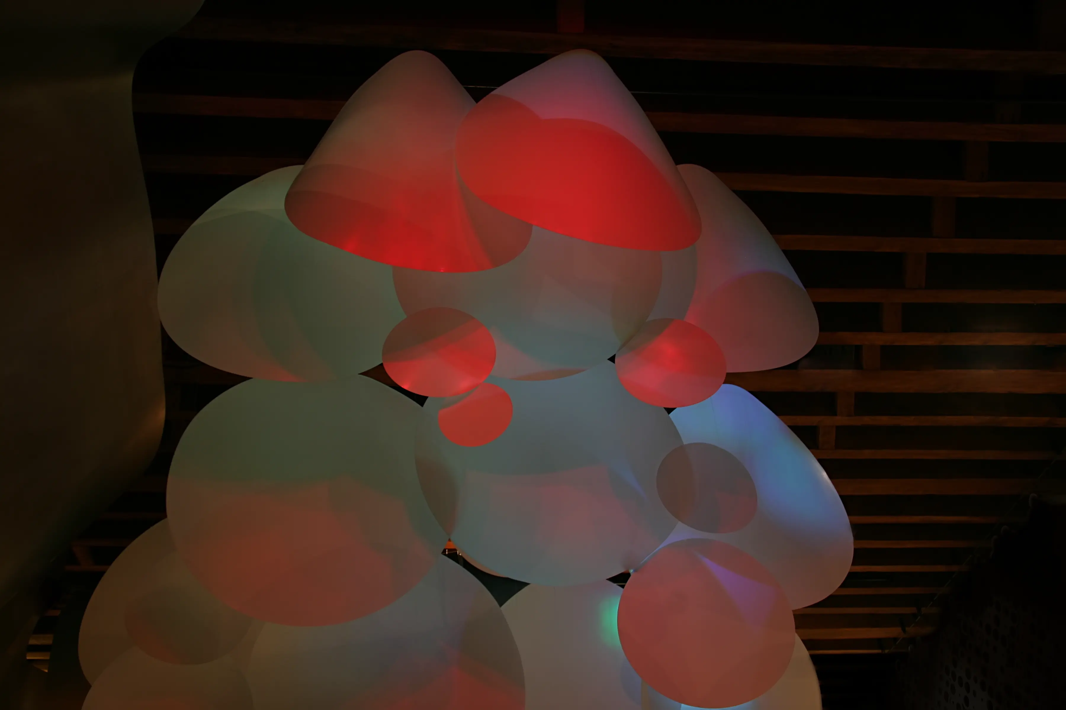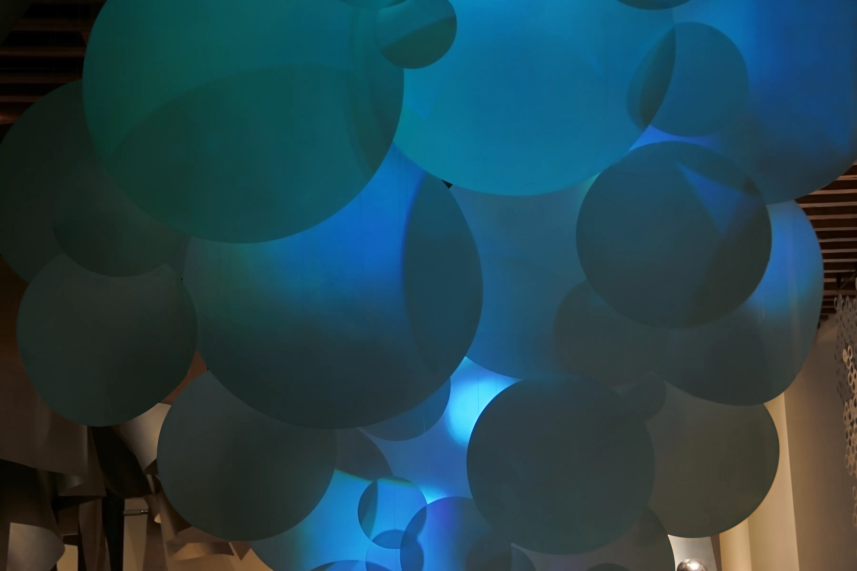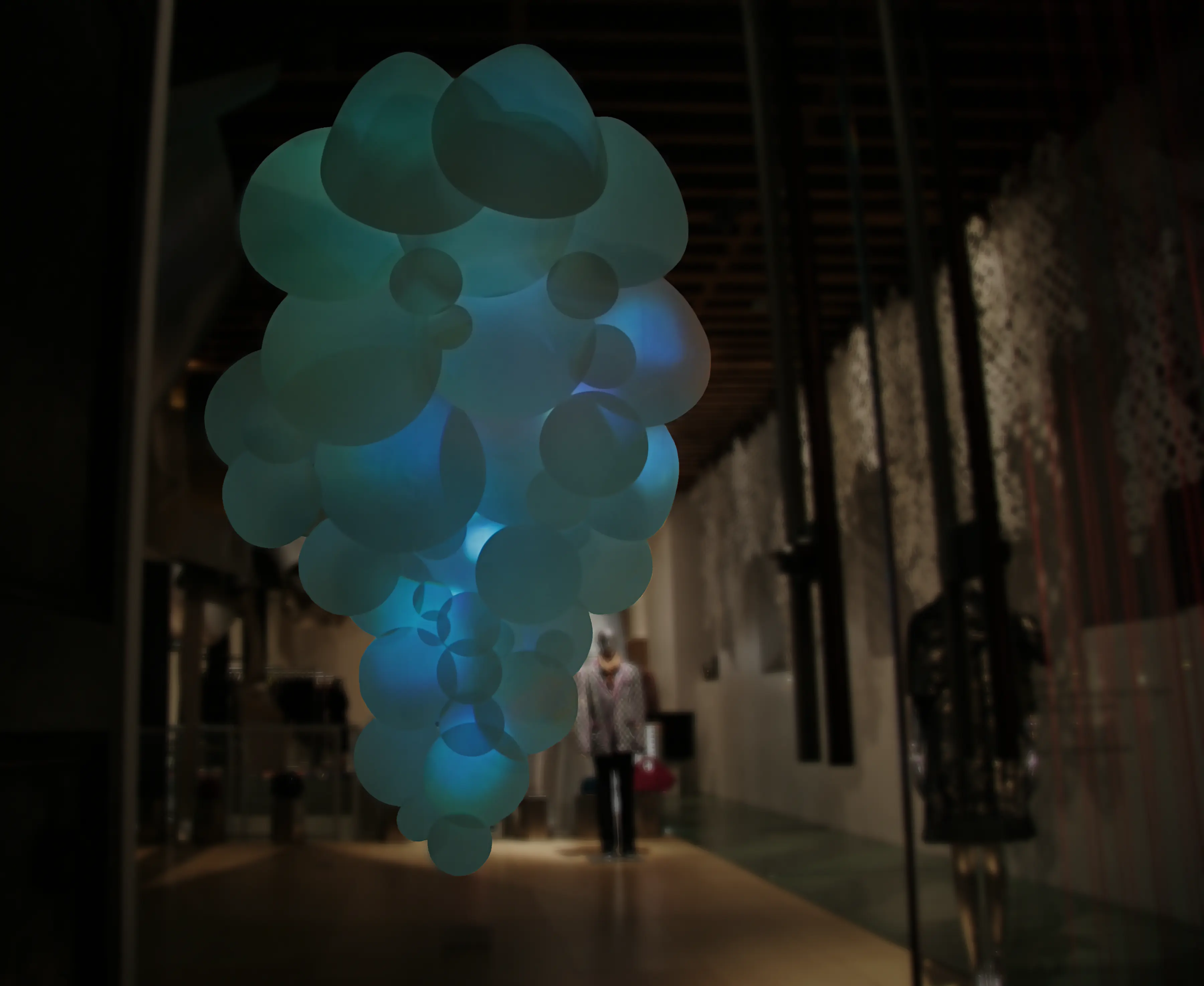 Inspired by the Northern Lights, Grimanesa Amorós takes the viewer on a journey in her work AURORA. This light sculpture was created for the window of Issey Miyake’s headquarters in TriBeCa. The installation was inspired by how the aurora borealis draws itself across the night sky in sweeping strips of shifting color and movement. Its form suggests light unfolding like the stars in the sky, echoing the natural arcs that illuminate the polar horizon.