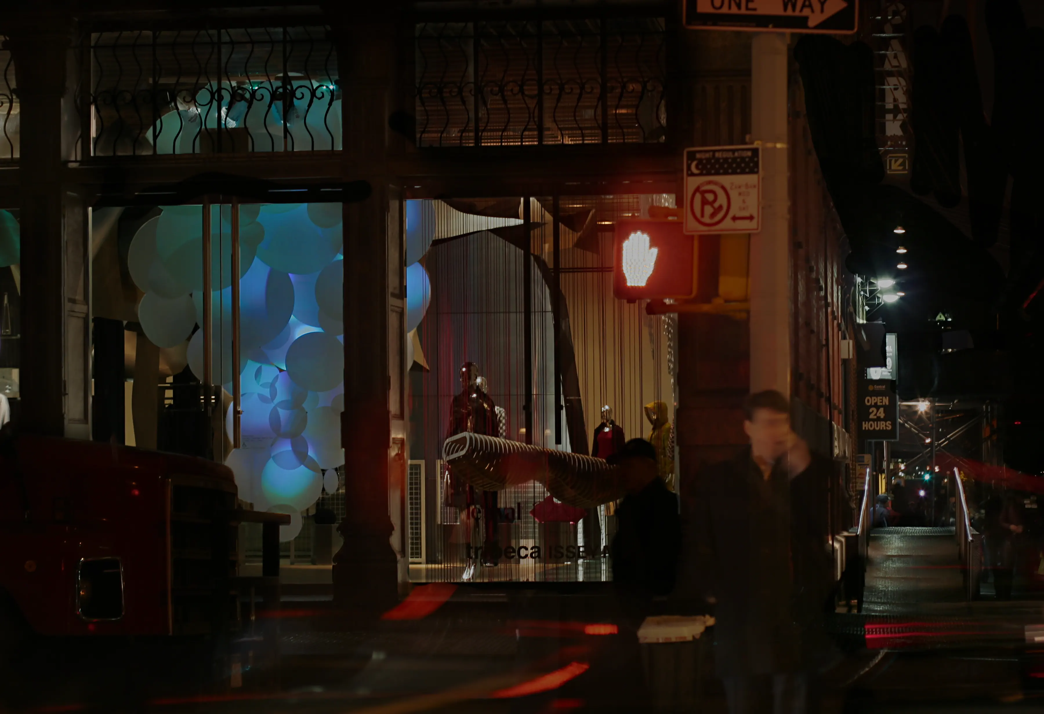 AURORA’s location in the Issey Miyake storefront, connects with Amoros’s mission to “share the light with others” and the brand’s vision of innovation and fluidity into the urban landscape. Passersby were invited to pause in the rhythm of the city and encounter light as an ephemeral phenomenon that connects the earthly with the cosmic.