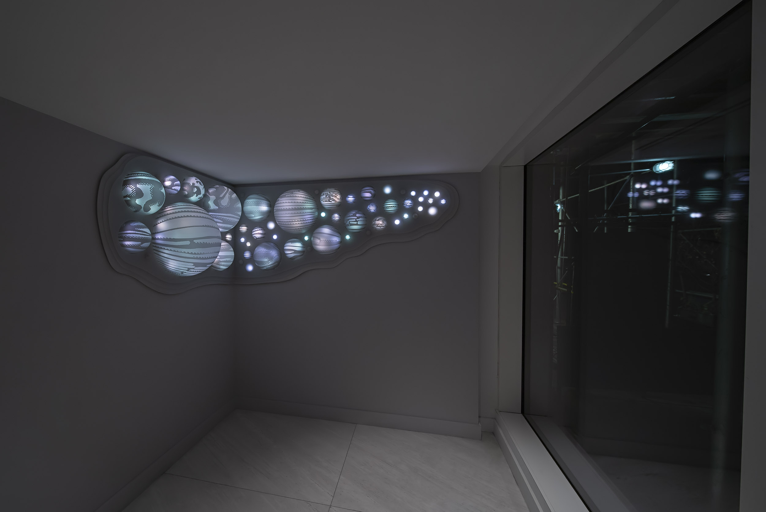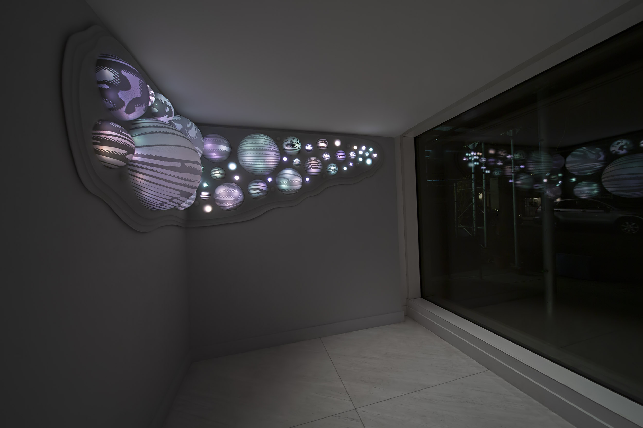 Description: IUGO is a light sculpture created for the lobby of the 176 E 82nd Street Building in New York. The building is developed by NEXUS Building Development Group and designed by ODA New York.